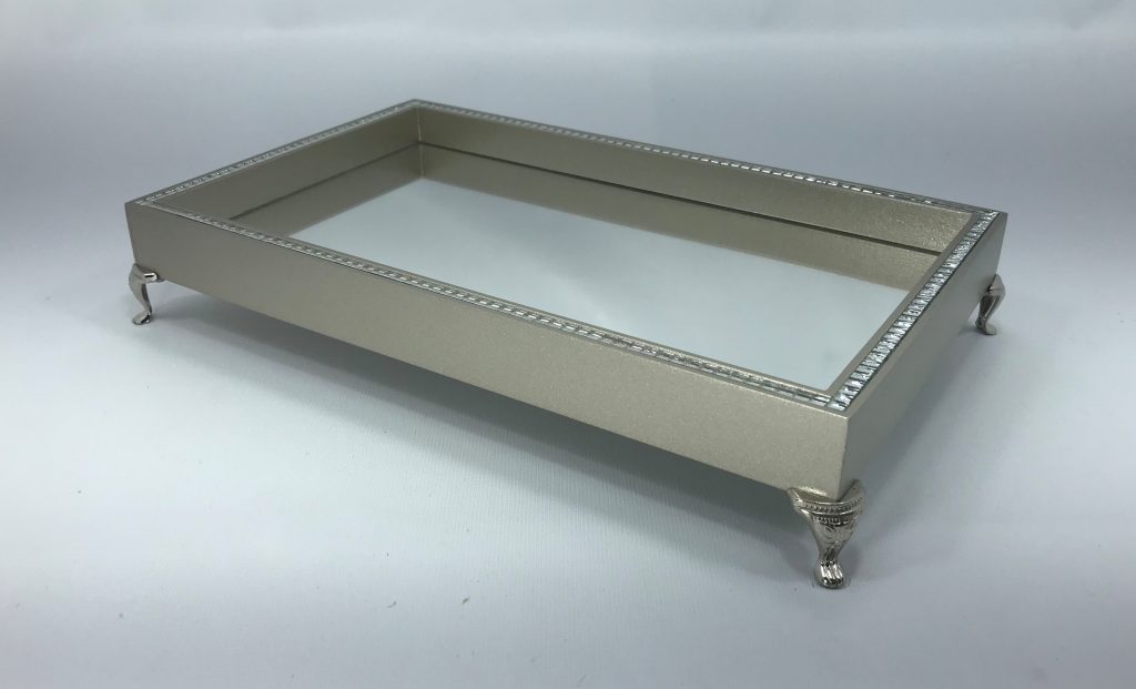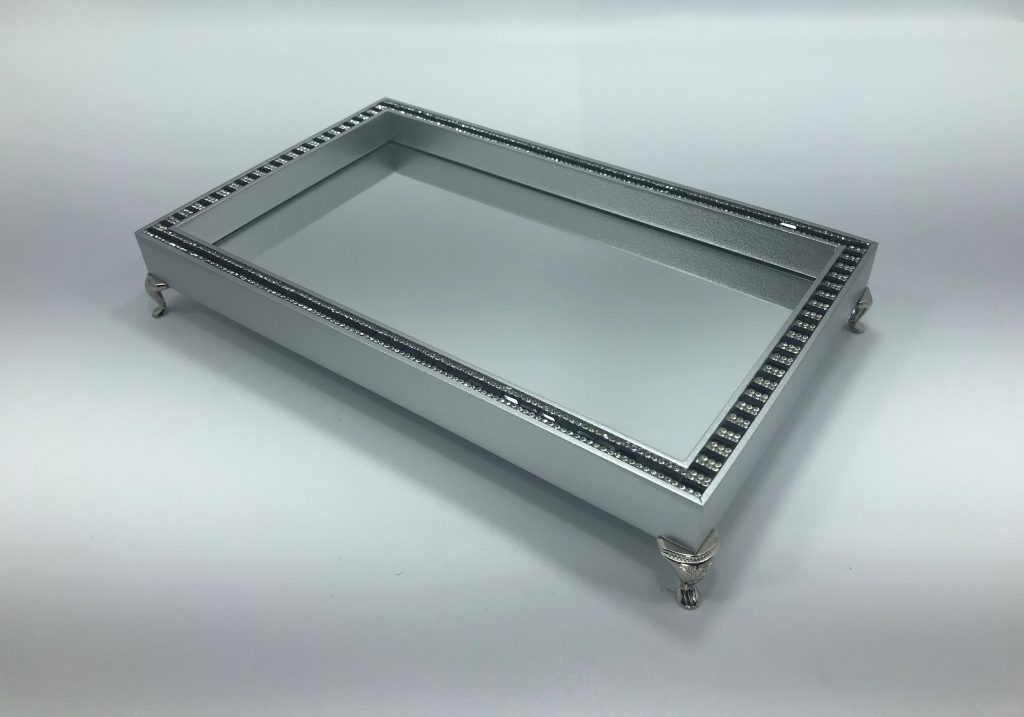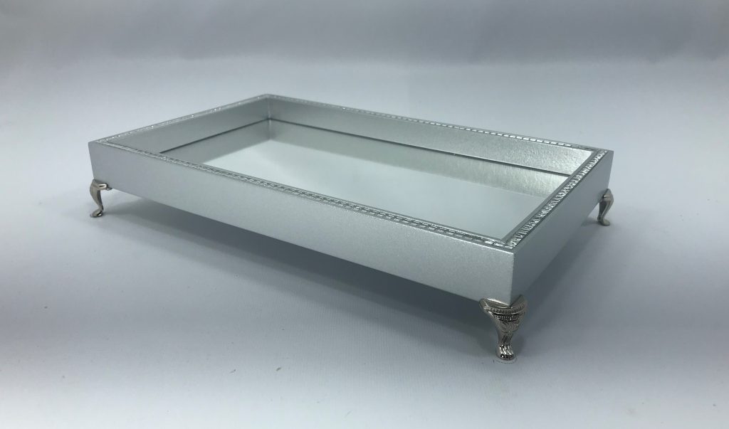 BANDEJA PEQUENA COM MANTA 15x25cm - PRATA