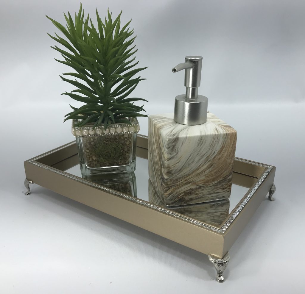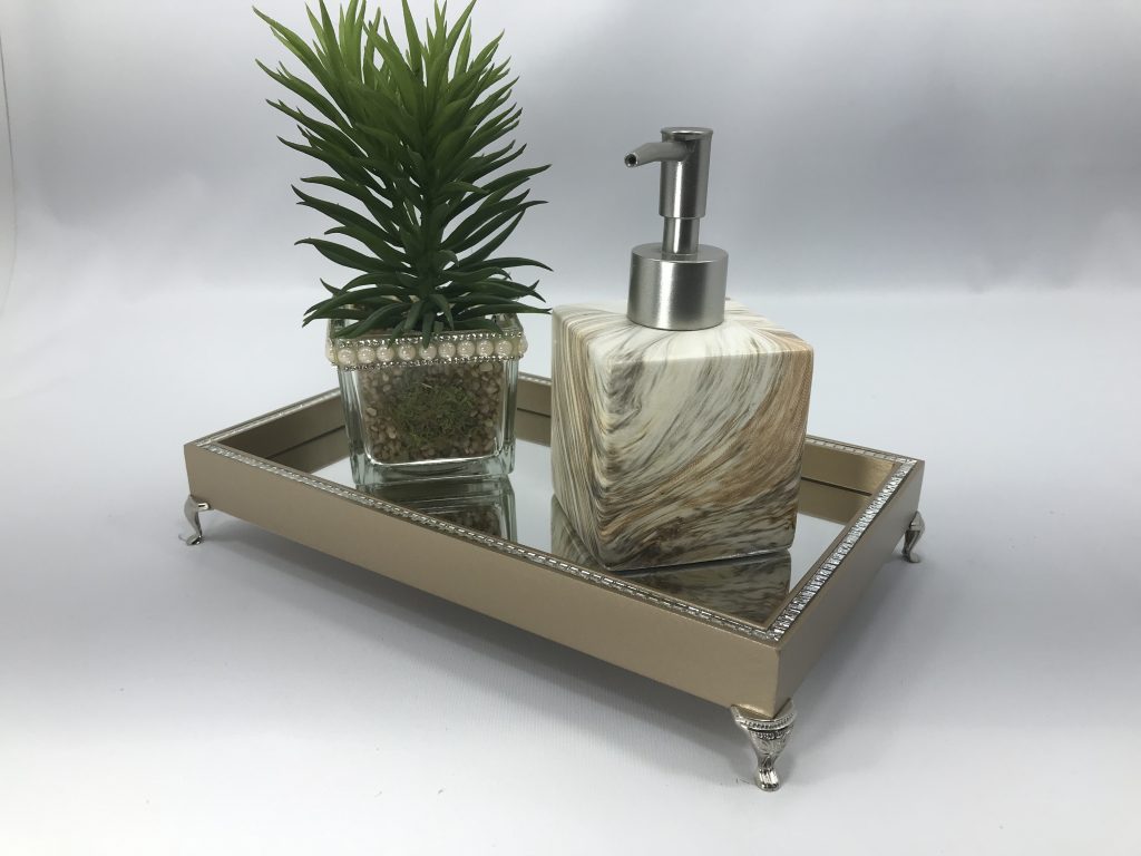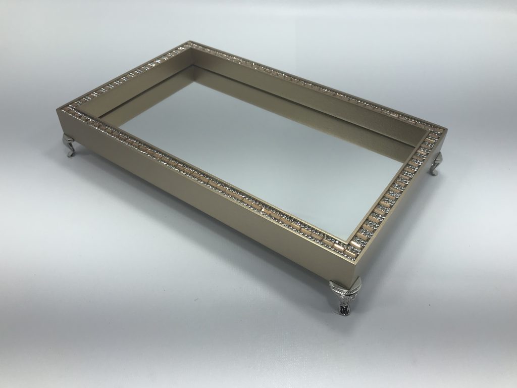 BANDEJA PEQUENA COM MANTA 15x25cm - CHAMPAGNE