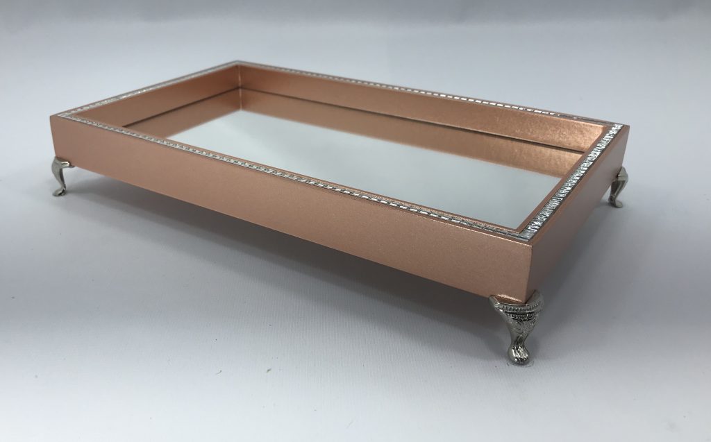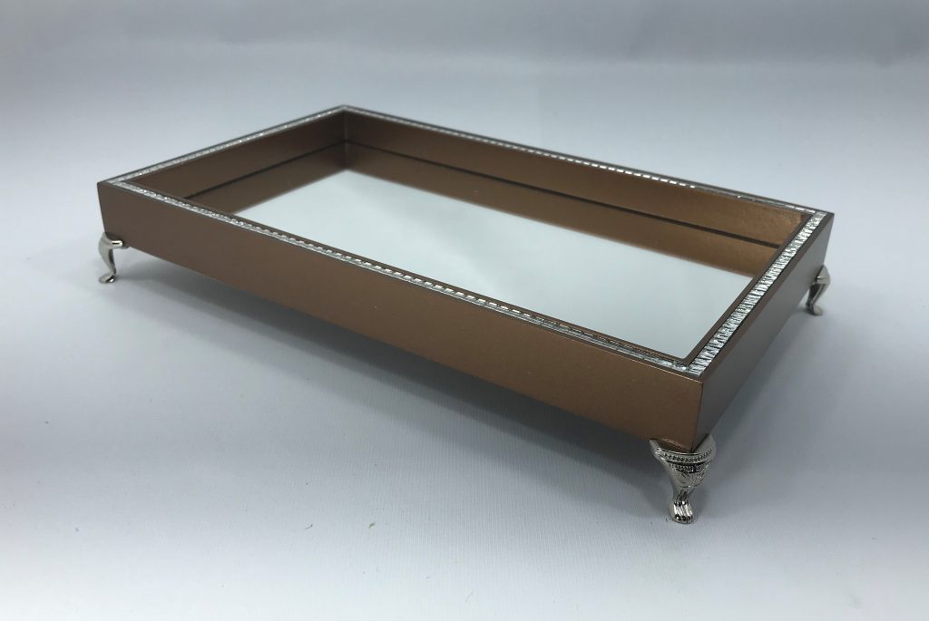 BANDEJA PEQUENA COM MANTA 15x25cm - DOURADO QUEIMADO