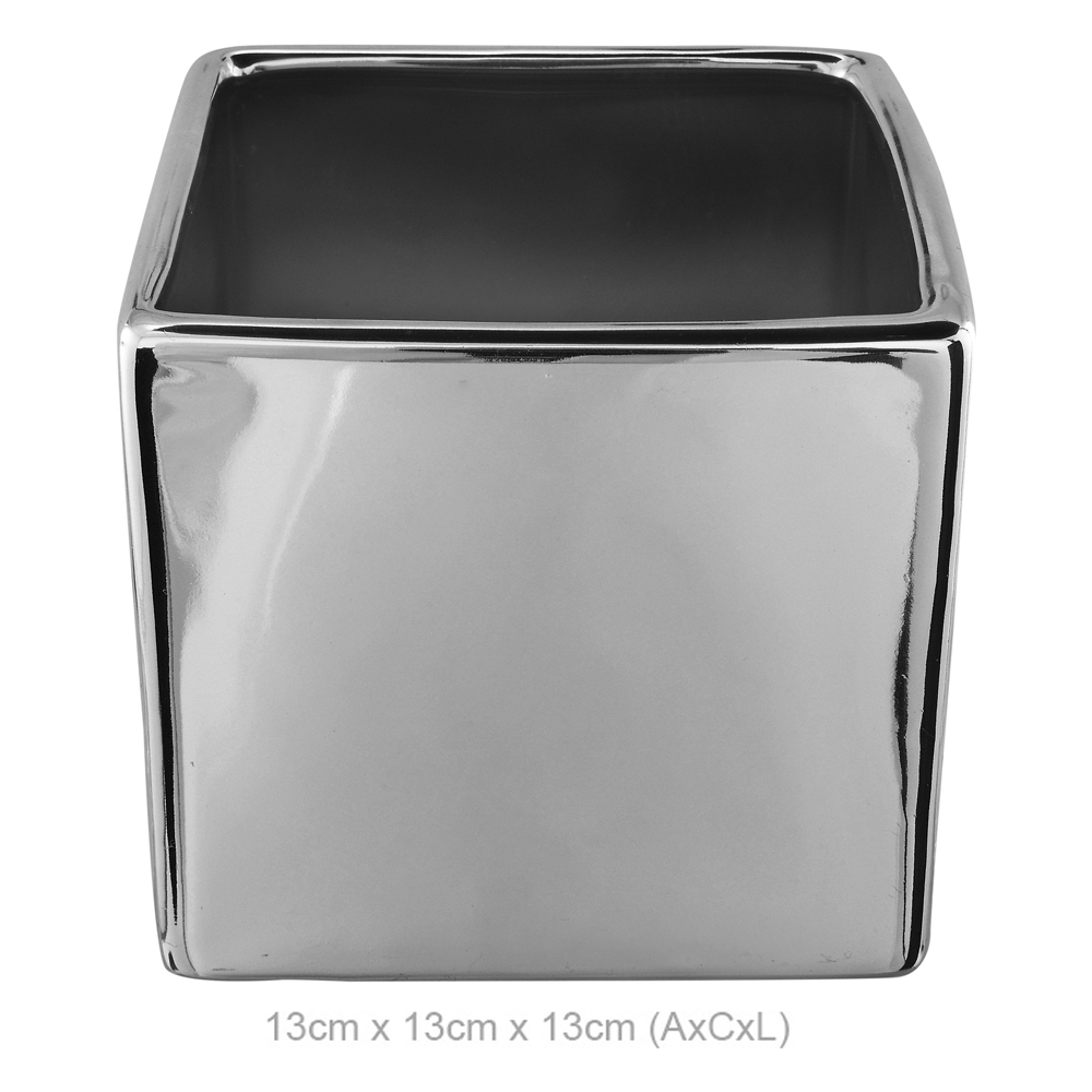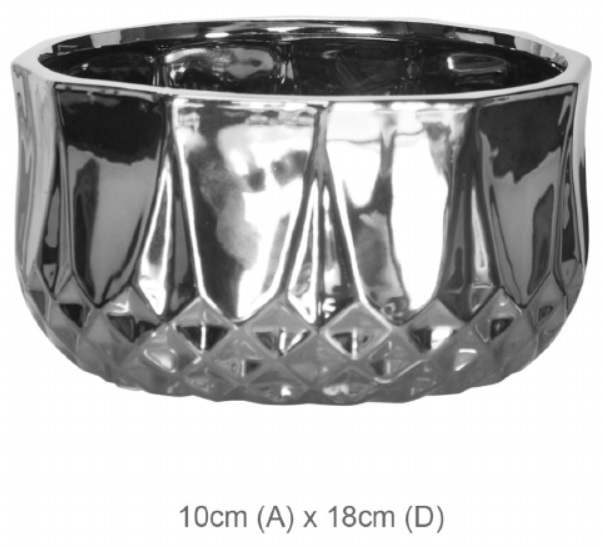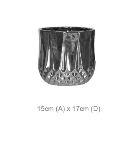 VASO CERÂMICA REDONDO (PRATA) 14cm