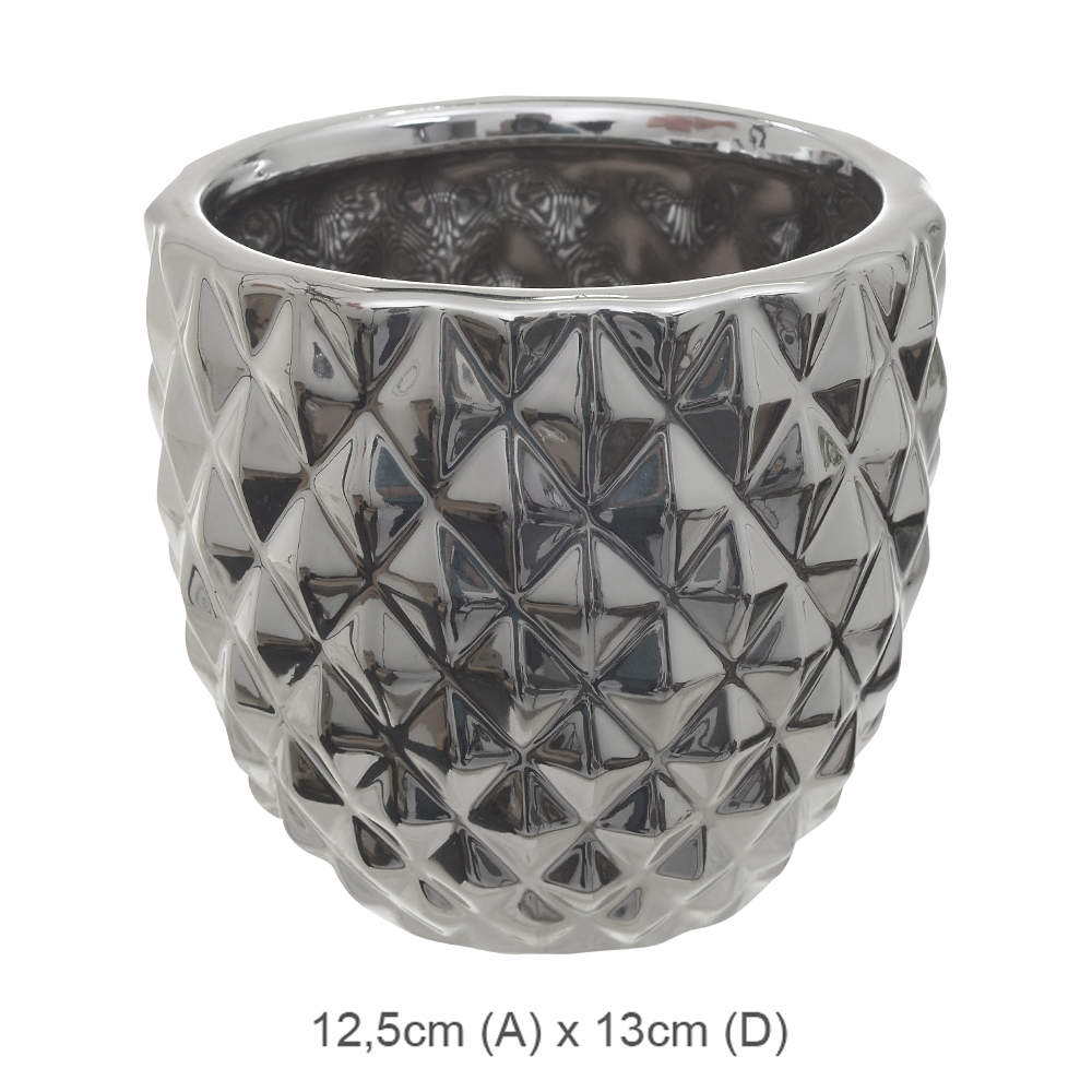 VASO CERÂMICA REDONDO (PRATA) 12cm