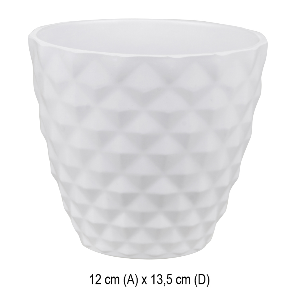 VASO CERÂMICA REDONDO (BRANCO PRATA) 13,5cm